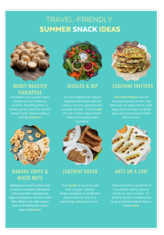 Includes 12 summer-friendly snack & meal ideas that are easy to make, eat in the heat, and on the go.